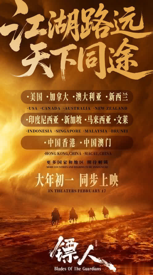 《镖人》于春节档在全球同步上映,全球票房剑指50亿人民币。